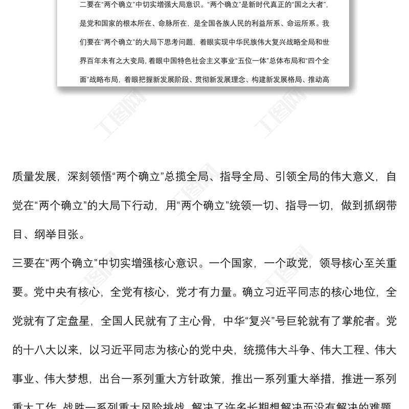 工圖網(wǎng)提供“兩個(gè)確立”研討發(fā)言供會員免費(fèi)下載。更多精彩黨課PPT素材,盡在工圖網(wǎng)。