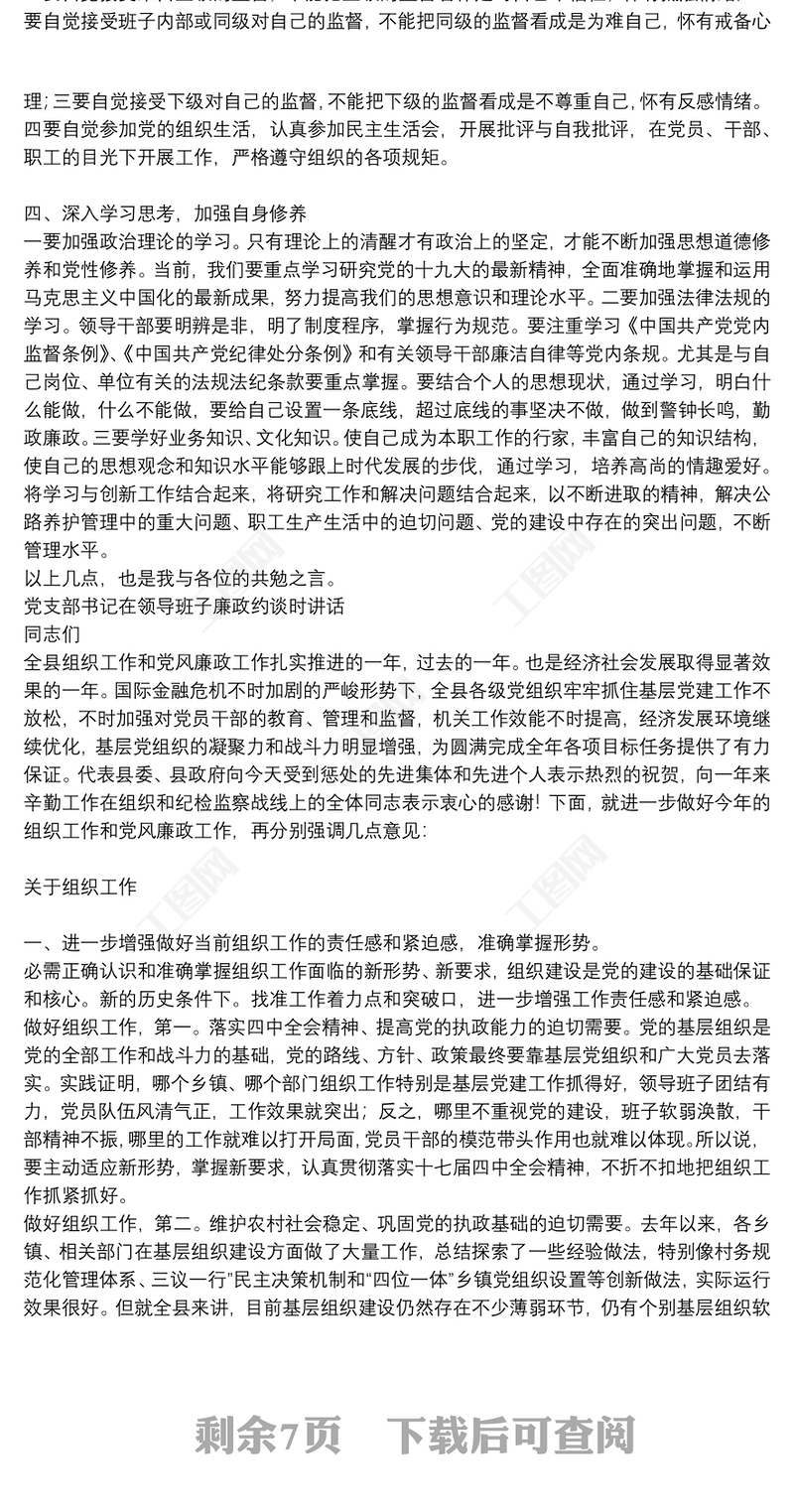 工圖網(wǎng)提供黨支部書記在領(lǐng)導(dǎo)班子廉政約談時(shí)講話供會(huì)員免費(fèi)下載。更多精彩黨課PPT素材,盡在工圖網(wǎng)。