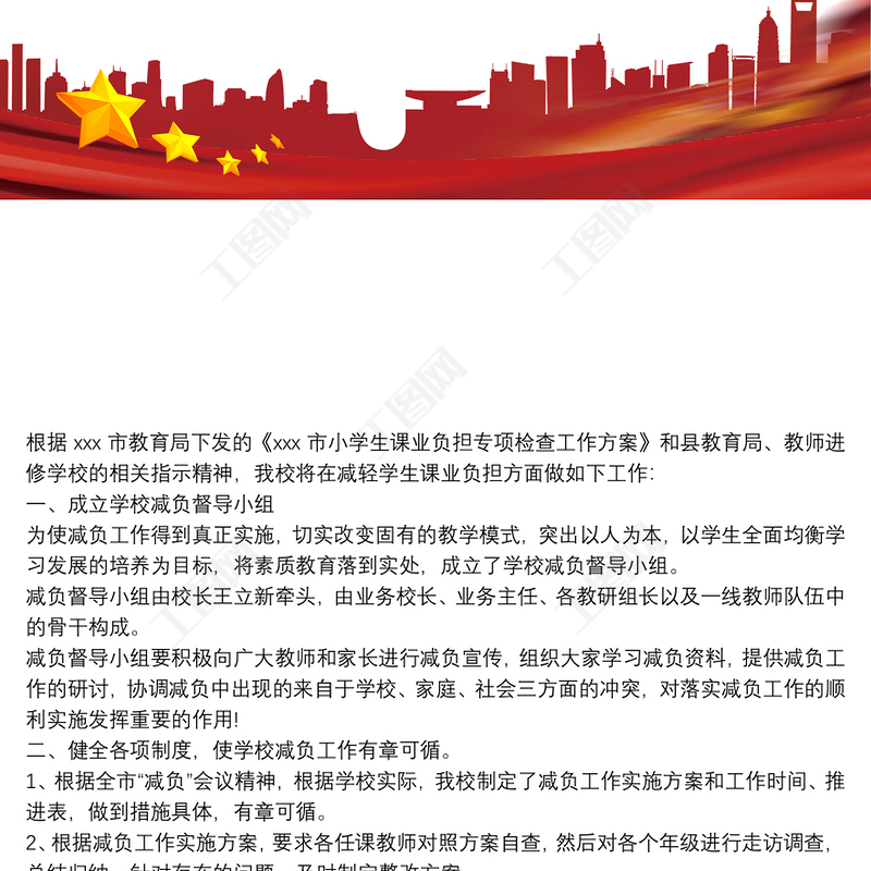 工圖網(wǎng)提供2021學(xué)?!皩W(xué)生減負”工作計劃范文供會員免費下載。更多精彩黨課PPT素材,盡在工圖網(wǎng)。