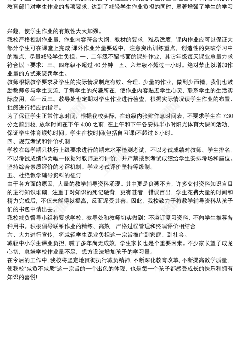 2021學(xué)?!皩W(xué)生減負”工作計劃范文