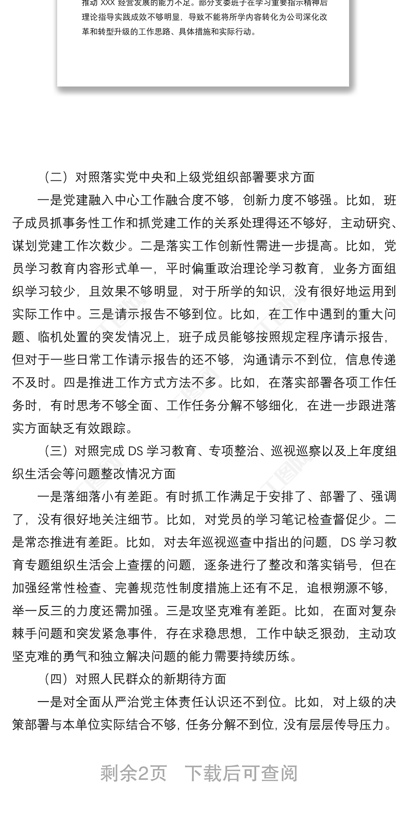 國企黨支部2021年度支委班子對照檢查材料 Array