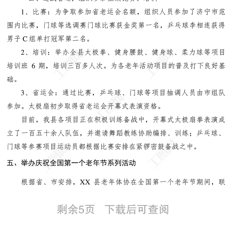 工圖網(wǎng)提供2021XXXX年縣老年人體育協(xié)會工作總結(jié)供會員免費下載。更多精彩黨課PPT素材,盡在工圖網(wǎng)。