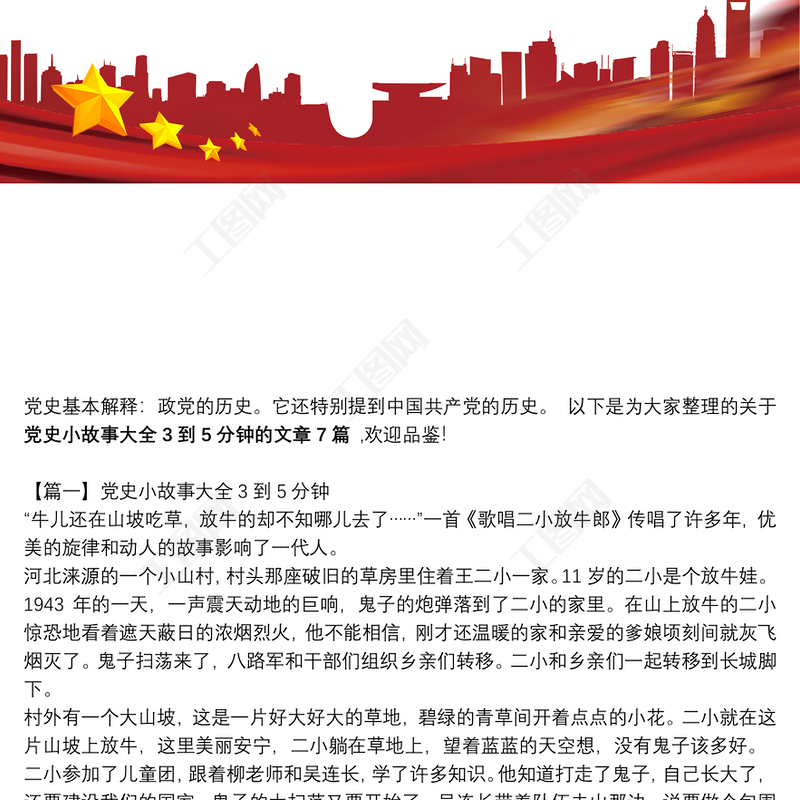工圖網(wǎng)提供黨史小故事大全3到5分鐘范文(精選7篇)供會員免費(fèi)下載。更多精彩黨課PPT素材,盡在工圖網(wǎng)。