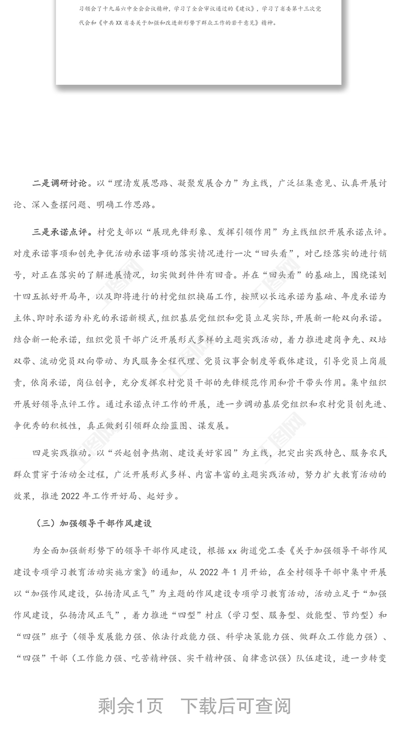 2022年村黨支部支委會會議記錄范文2022年全面從嚴治黨黨風廉政建設(shè)工作總結(jié)2021年上半年工作總結(jié) 一 學習黨史2021公安機關(guān)黨支部書記半年工作總結(jié)2022年村黨支部書記述職述責述廉報告2021年學校黨支部上半年黨史學習教育工作總結(jié)2021消防隊黨支部半年工作總結(jié)2021年村黨支部黨史學習研討交流會議議程2021黨支部半年工作總結(jié)及黨史學習情況報告2021第一黨支部上半年工作總結(jié)幼兒園2021上半年黨史學習教育工作總結(jié)中石化2021黨支部半年工作總結(jié)2021鄉(xiāng)鎮(zhèn)衛(wèi)生院黨支部黨史學習教育半年工作總結(jié)2022年村黨支部書記的發(fā)聲亮劍2021年組織生活會半年工作總結(jié)2023村級黨建半年工作總結(jié)