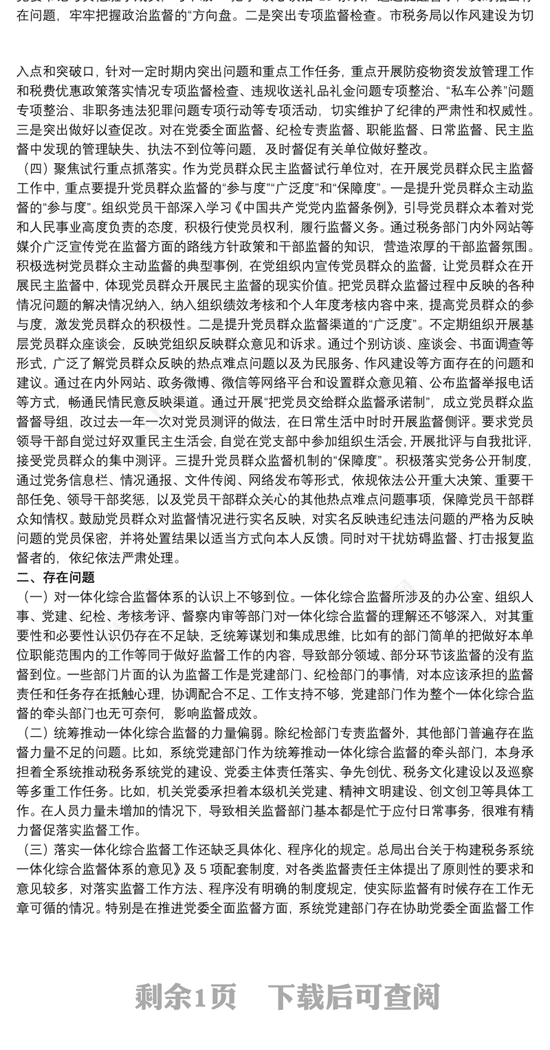 市稅務(wù)局關(guān)于20xx年推進(jìn)一體化綜合監(jiān)督情況報告范文 Array