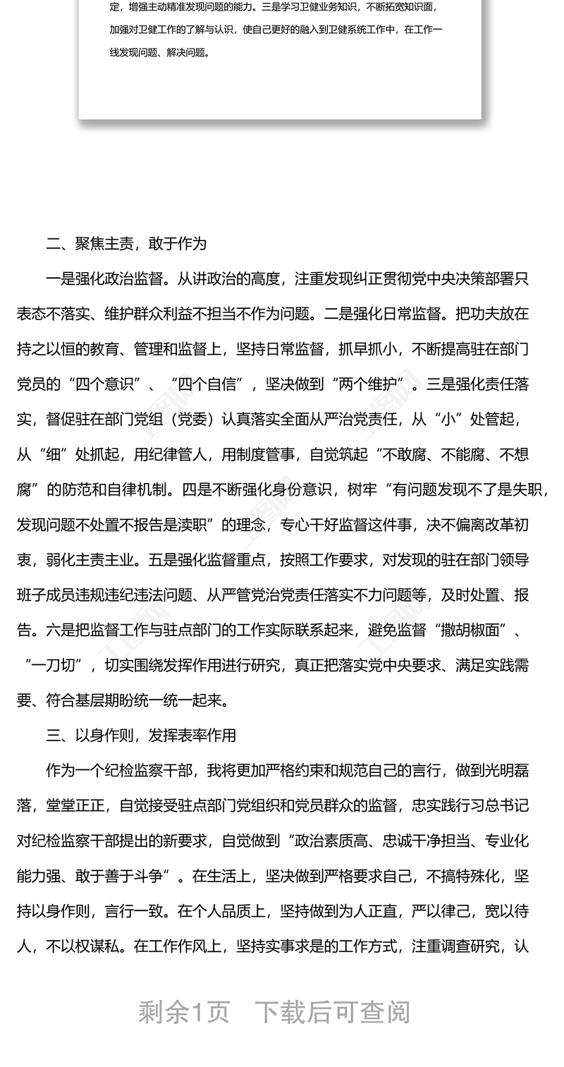 派駐紀檢組組長在駐點單位任職表態(tài)發(fā)言