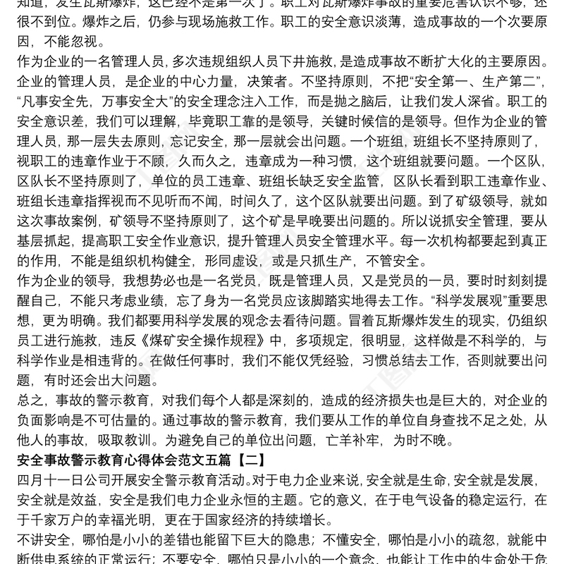 首頁(yè) > WORD文檔 > 心得體會(huì) > 安全事故警示教育心得體會(huì)范文五篇.DOCX 【圖片、文字、動(dòng)畫(huà)均可編輯】