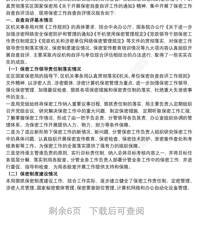 工圖網(wǎng)提供單位保密自查自評工作情況報(bào)告范例五篇供會員免費(fèi)下載。更多精彩黨課PPT素材,盡在工圖網(wǎng)。