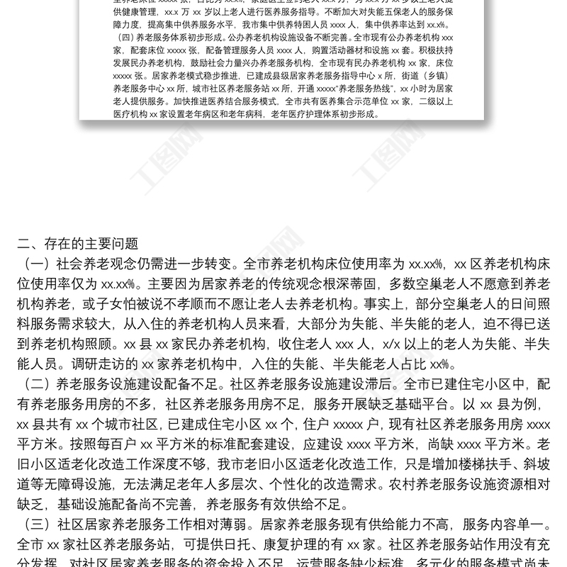 工圖網(wǎng)提供養(yǎng)老服務(wù)體系建設(shè)情況調(diào)研報(bào)告供會(huì)員免費(fèi)下載。更多精彩黨課PPT素材,盡在工圖網(wǎng)。