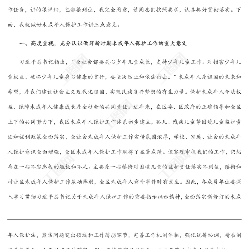 在全區(qū)未成年人保護工作領(lǐng)導(dǎo)小組第一次全體會議上的講話