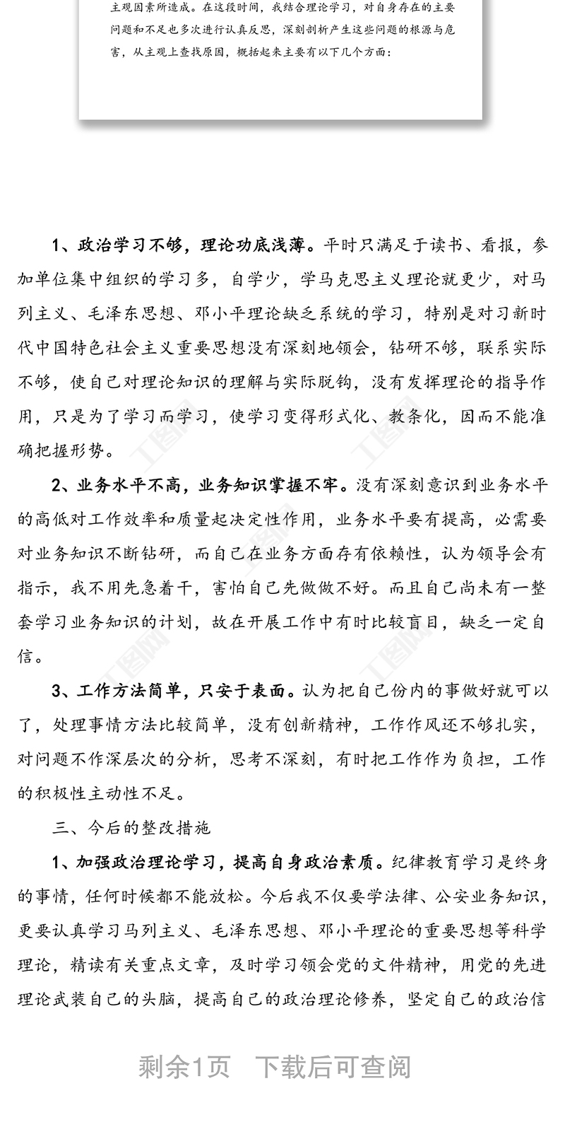 工圖網(wǎng)提供公安民警政法隊伍教育整頓個人對照檢查材料范文供會員免費下載。更多精彩黨課PPT素材,盡在工圖網(wǎng)。