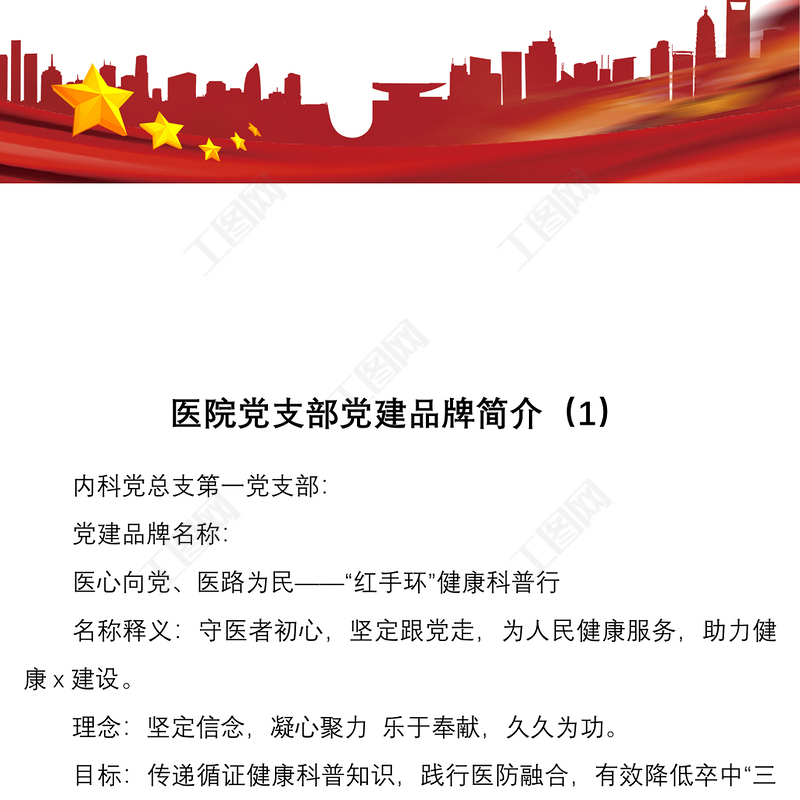 工圖網(wǎng)提供黨支部黨建品牌醫(yī)院黨支部黨建品牌名稱理念和目標(biāo)簡(jiǎn)介匯編21篇供會(huì)員免費(fèi)下載。更多精彩黨課PPT素材,盡在工圖網(wǎng)。