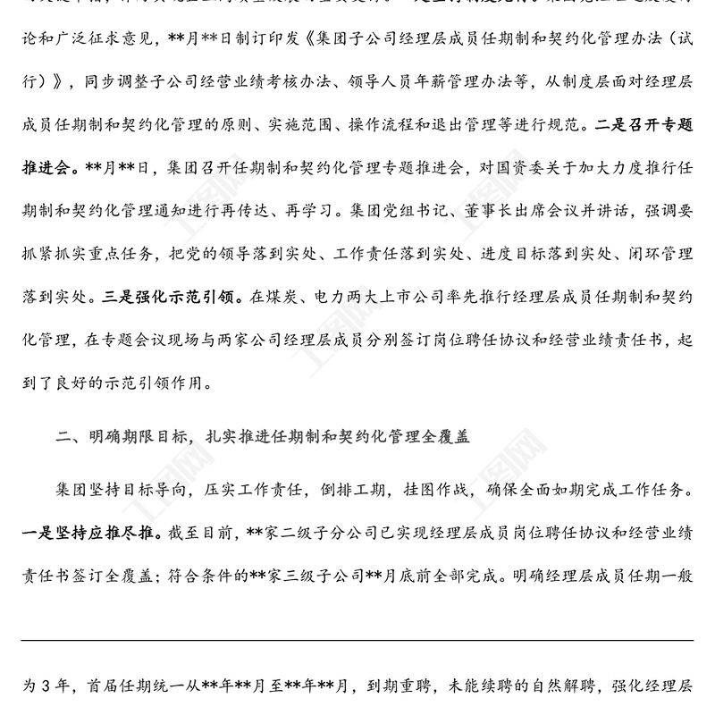 國企改革經(jīng)驗交流材料:加強經(jīng)理層成員任期制和契約化管理 進一步深化國有資本投資公司改革,國企改革經(jīng)驗交流材料:加強經(jīng)理層成員任期制和契約化管理 進一步深化國有資本投資公司改革 Array