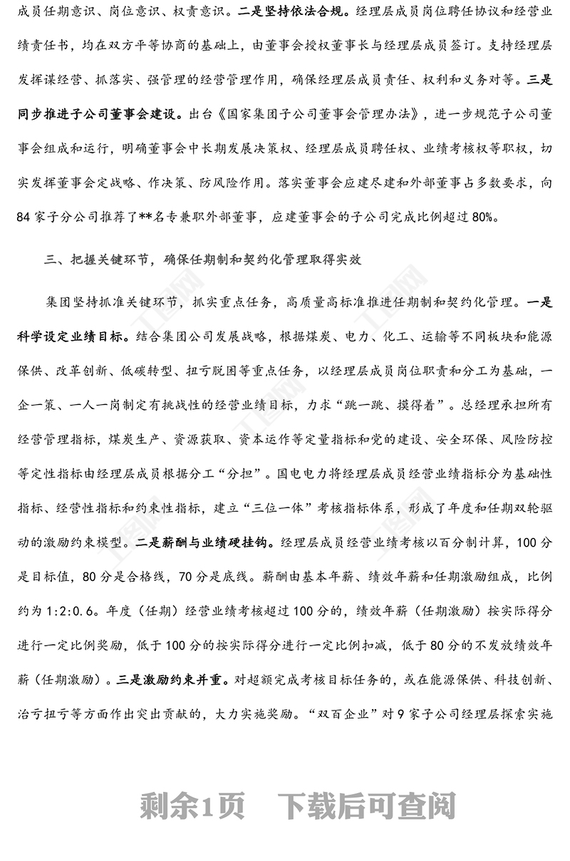 工圖網(wǎng)提供國企改革經(jīng)驗交流材料:加強經(jīng)理層成員任期制和契約化管理 進一步深化國有資本投資公司改革供會員免費下載。更多精彩黨課PPT素材,盡在工圖網(wǎng)。