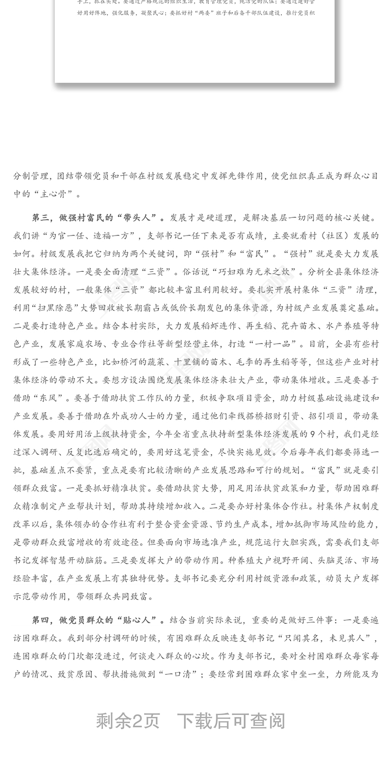 2022黨支部書記與組織委員的談心談話記錄2021黨支部書記在組織生活會(huì)上的表態(tài)發(fā)言材料領(lǐng)導(dǎo)在2022年機(jī)關(guān)黨組織書記抓基層黨建述職評(píng)議會(huì)上的點(diǎn)評(píng)講話2021黨組織書記在黨史學(xué)習(xí)教育專題民主生活會(huì)上的總結(jié)發(fā)言2022年黨組織書記述責(zé)述廉報(bào)告2022黨組織書記抓基層黨建工作問題整改方案2021在黨支部書記培訓(xùn)班開班上的講話2022年黨組織書記履行全面從嚴(yán)治黨責(zé)任述職報(bào)告2022年非公黨組織書記述職報(bào)告2021社區(qū)黨組織書記黨史學(xué)習(xí)教育專題黨課講稿2021黨支部書記黨史學(xué)習(xí)教育組織生活會(huì)表態(tài)發(fā)言簡短精辟2022基層黨組織書記集體廉潔談話提綱2023青年干部能力提升開班講話