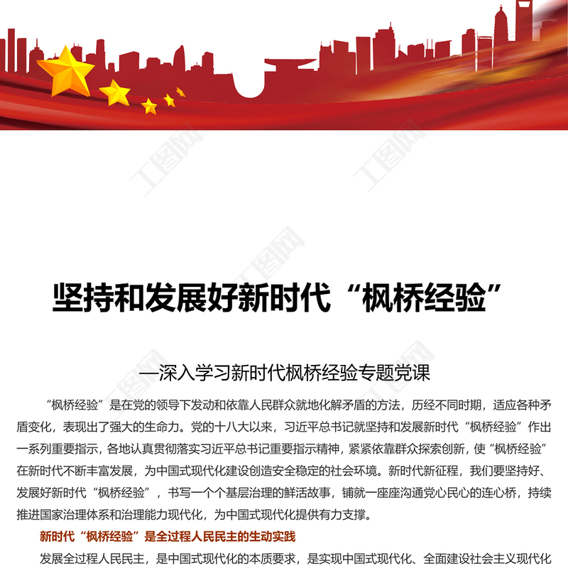 工圖網(wǎng)提供堅持和發(fā)展好新時代“楓橋經(jīng)驗”PPT黨政風(fēng)深入學(xué)習(xí)新時代楓橋經(jīng)驗專題黨課(講稿)供會員免費下載。更多精彩黨課PPT素材,盡在工圖網(wǎng)。