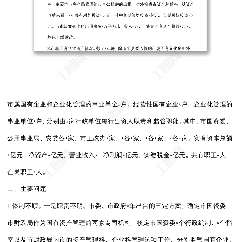 工圖網(wǎng)提供關(guān)于盤活市屬國(guó)有資產(chǎn)促進(jìn)經(jīng)濟(jì)發(fā)展的調(diào)研報(bào)告供會(huì)員免費(fèi)下載。更多精彩黨課PPT素材,盡在工圖網(wǎng)。