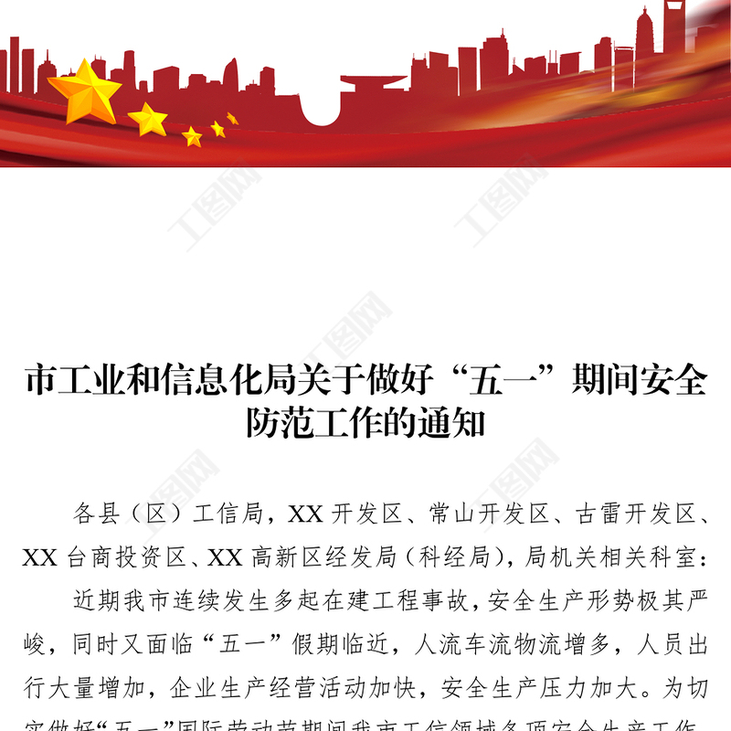 工圖網(wǎng)提供市工業(yè)和信息化局關(guān)于做好“五一”期間安全防范工作的通知(20230413)供會員免費下載。更多精彩黨課PPT素材,盡在工圖網(wǎng)。