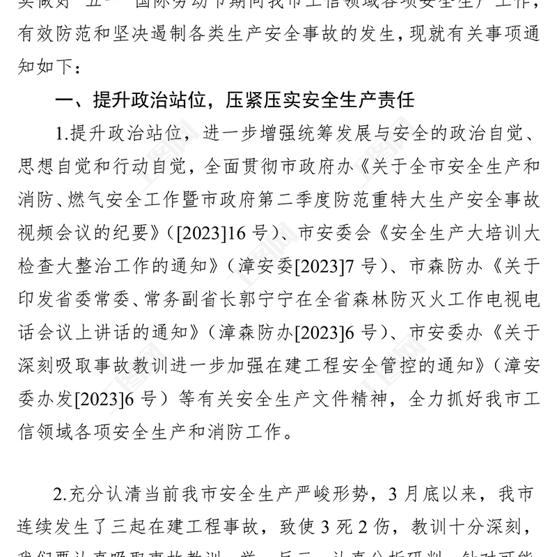 市工業(yè)和信息化局關(guān)于做好“五一”期間安全防范工作的通知(20230413) Array
