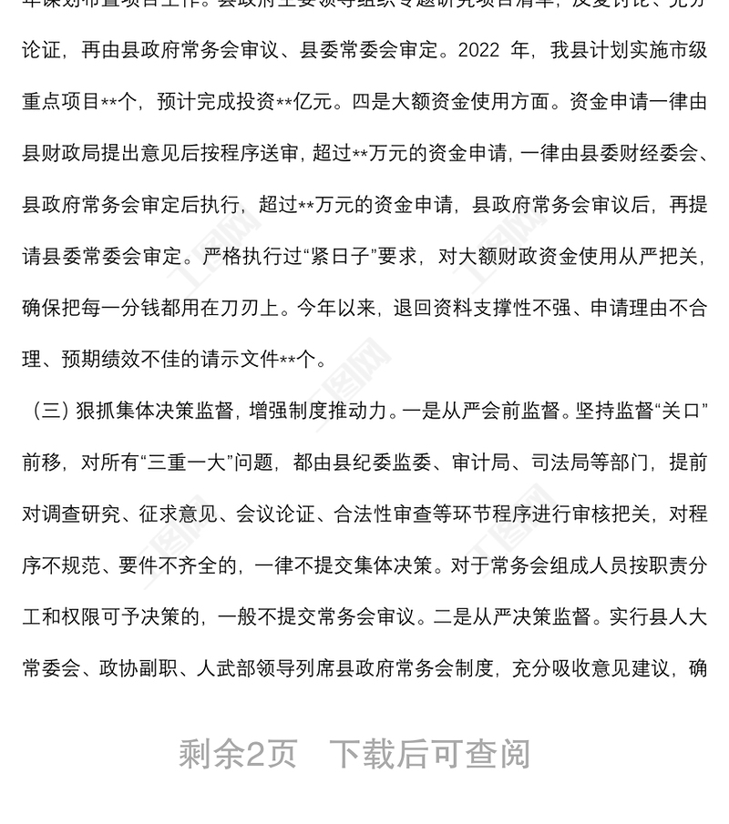 工圖網(wǎng)提供全縣“三重一大”決策制度落實(shí)情況報(bào)告供會(huì)員免費(fèi)下載。更多精彩黨課PPT素材,盡在工圖網(wǎng)。