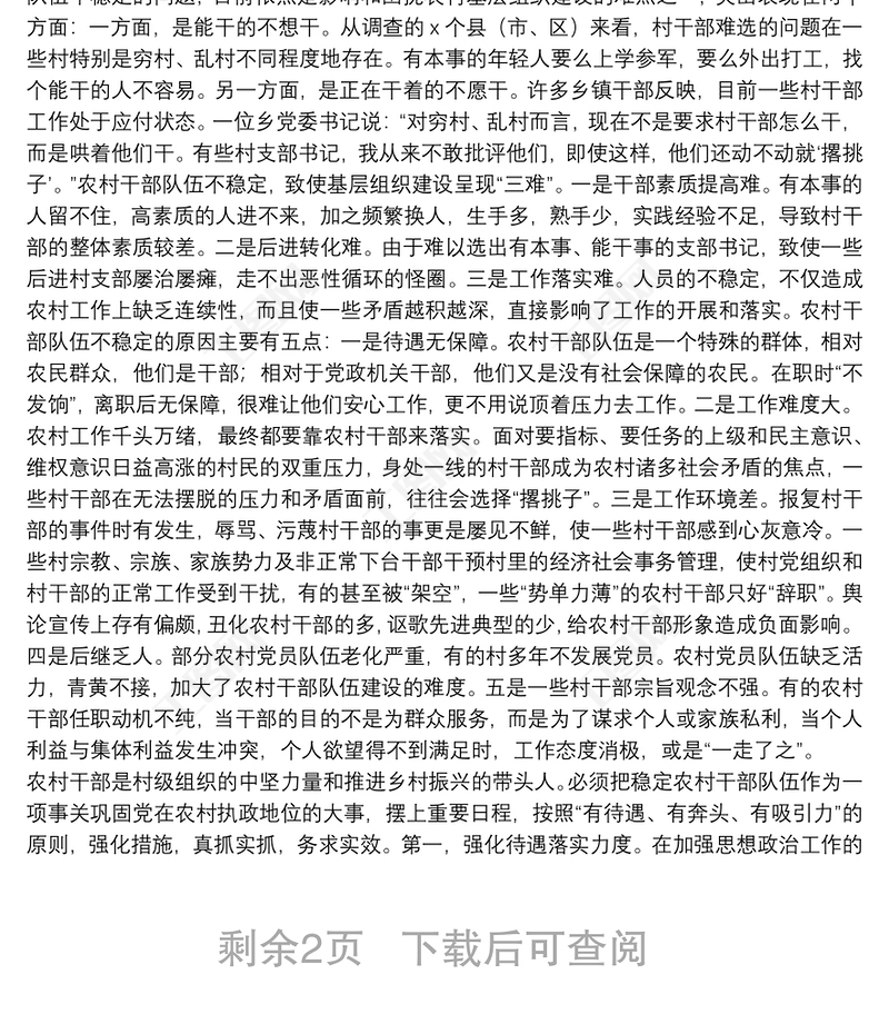 市于農(nóng)村基層組織建設(shè)存在突出問題調(diào)研報告