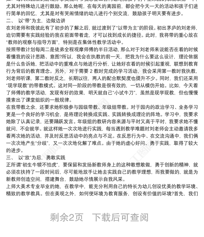 師傅帶徒弟工作總結