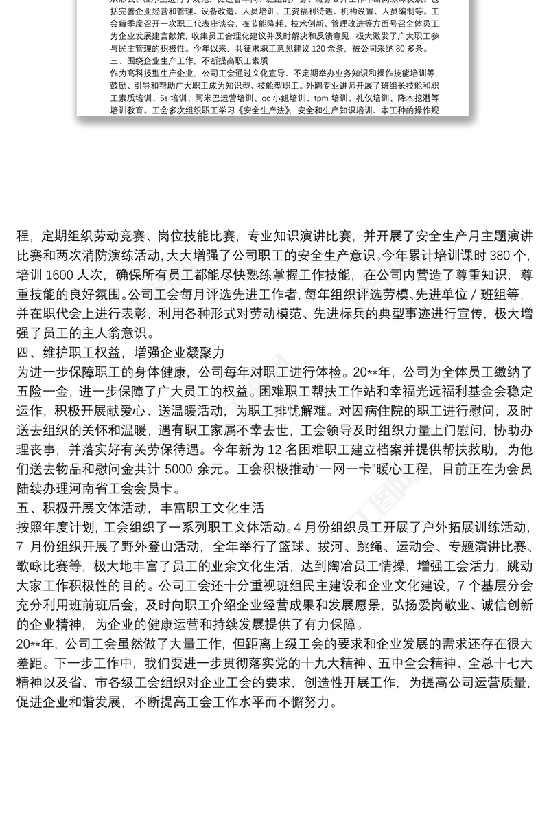 公司20**年工會(huì)工作總結(jié)匯報(bào)