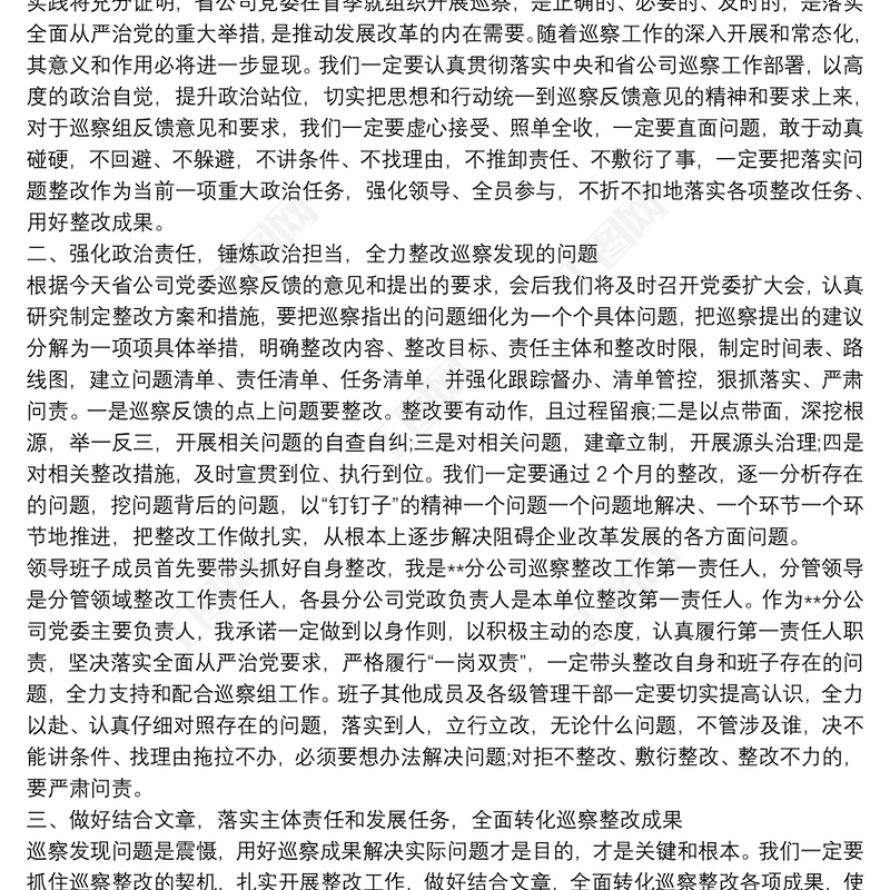 巡察反饋單位表態(tài)發(fā)言3篇 Array