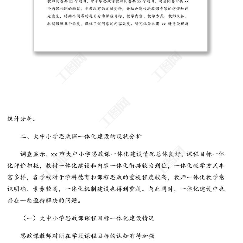 工圖網(wǎng)提供大中小學(xué)思想政治理論課一體化建設(shè)現(xiàn)狀調(diào)研報(bào)告(基于xx市的數(shù)據(jù))(高校)供會(huì)員免費(fèi)下載。更多精彩黨課PPT素材,盡在工圖網(wǎng)。