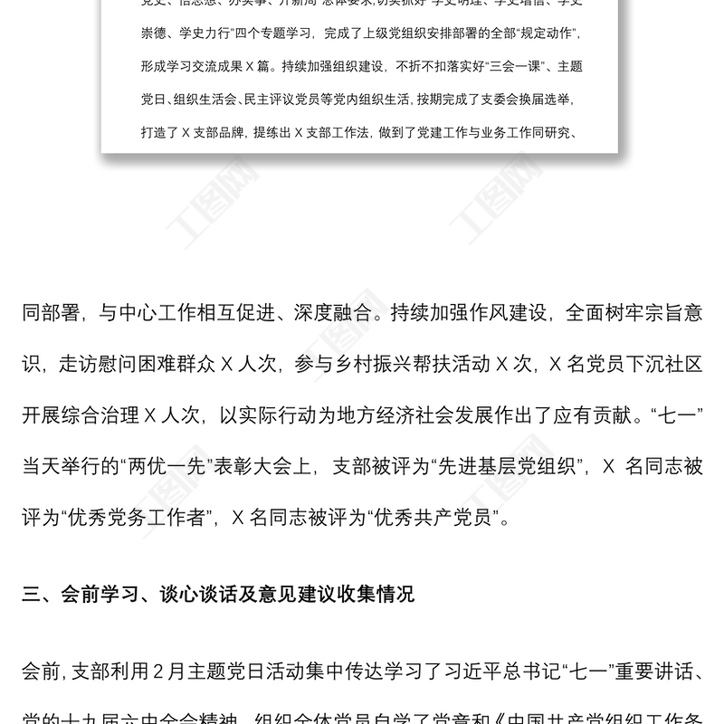 工圖網(wǎng)提供基層黨支部年度組織生活會(huì)會(huì)前情況介紹及班子問題剖析材料供會(huì)員免費(fèi)下載。更多精彩黨課PPT素材,盡在工圖網(wǎng)。