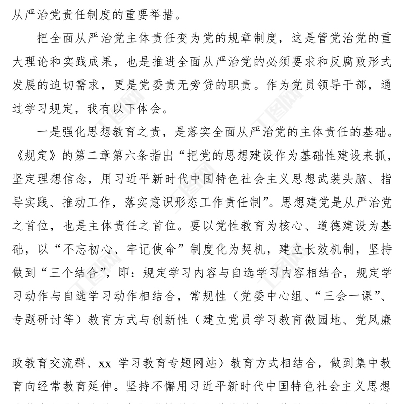 工圖網(wǎng)提供2021學(xué)習(xí)貫徹《黨委(黨組)落實(shí)全面從嚴(yán)治黨主體責(zé)任規(guī)定》心得體會(huì)、研討發(fā)言材料3篇供會(huì)員免費(fèi)下載。更多精彩黨課PPT素材,盡在工圖網(wǎng)。