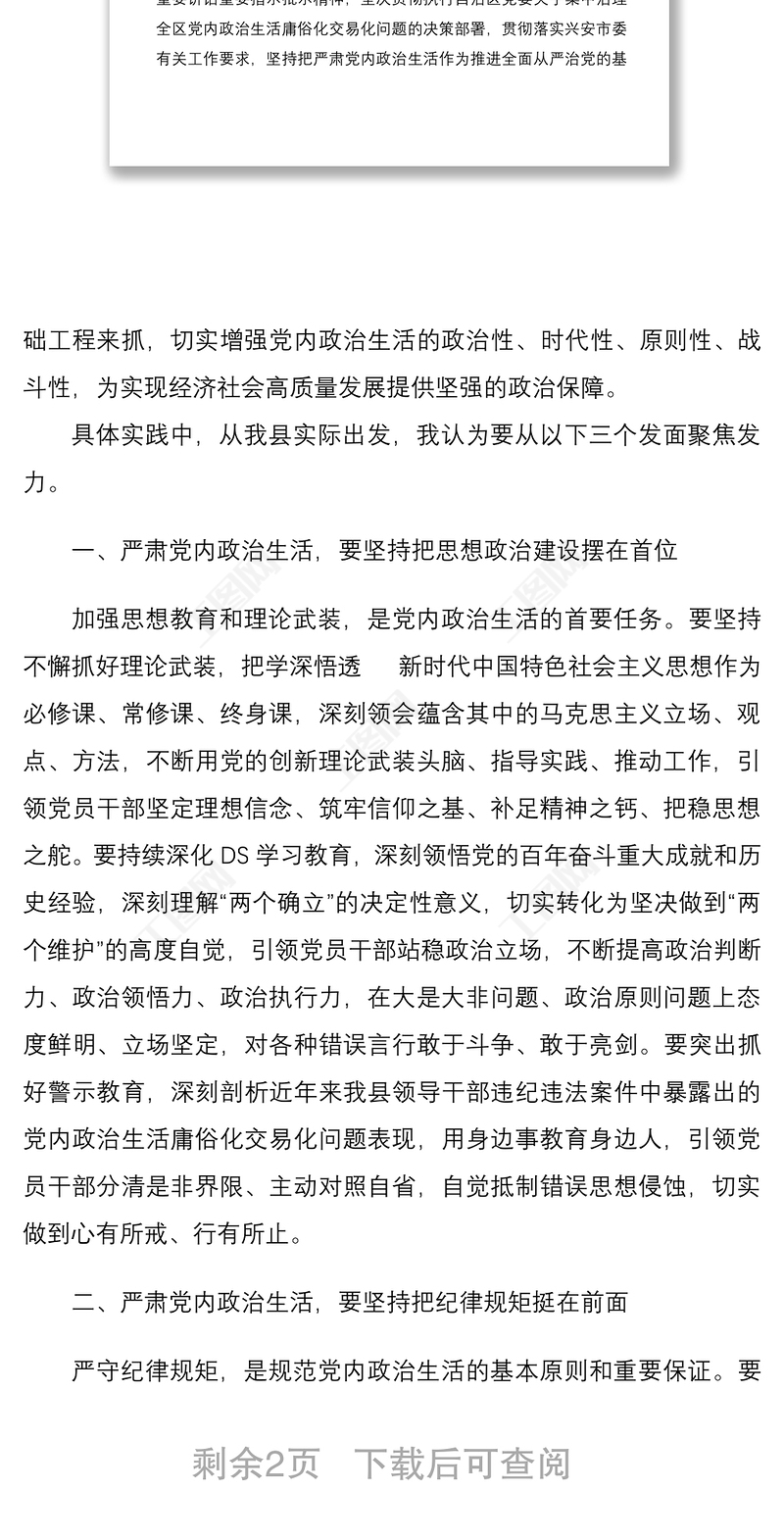 學(xué)習(xí)黨內(nèi)政治生活相關(guān)內(nèi)容研討發(fā)言
