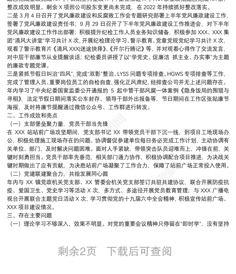 國有企業(yè)黨支部2021年度黨建工作總結(jié)和2022年工作計劃