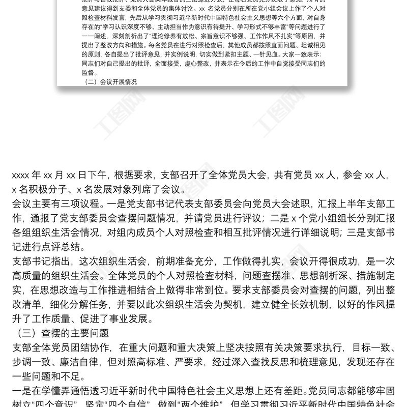 XX黨支部專題組織生活會(huì)和民主評(píng)議黨員情況的報(bào)告