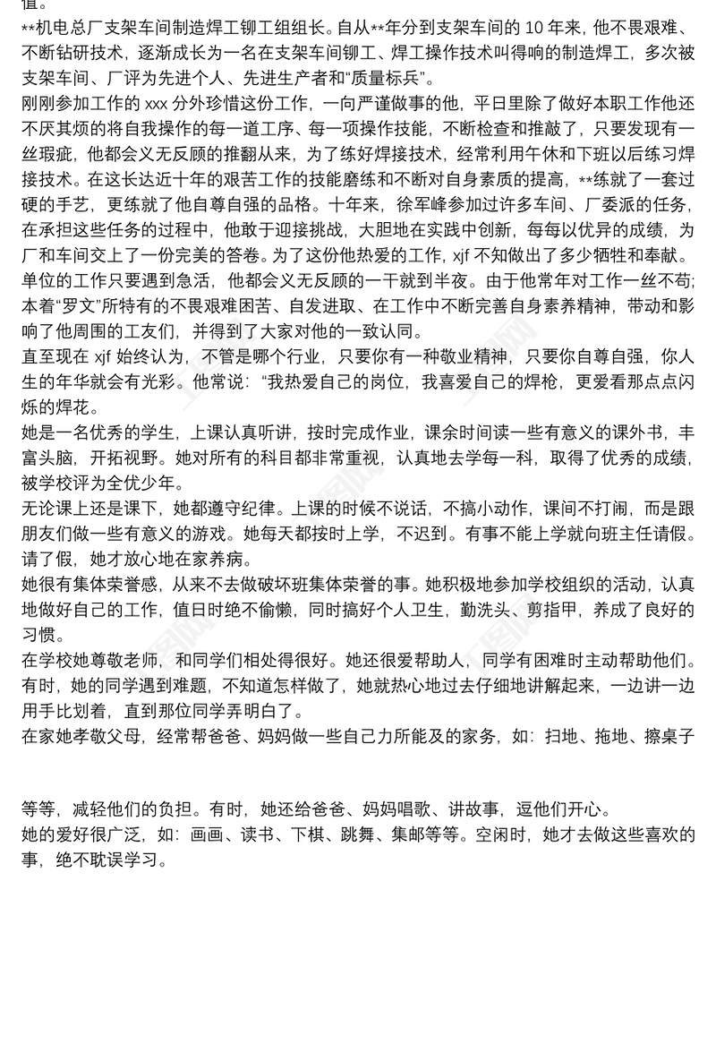 > 經(jīng)驗(yàn)事跡 > 個(gè)人先進(jìn)事跡300字 個(gè)人先進(jìn)事跡材料模板三篇.DOCX 【圖片、文字、動(dòng)畫均可編輯】