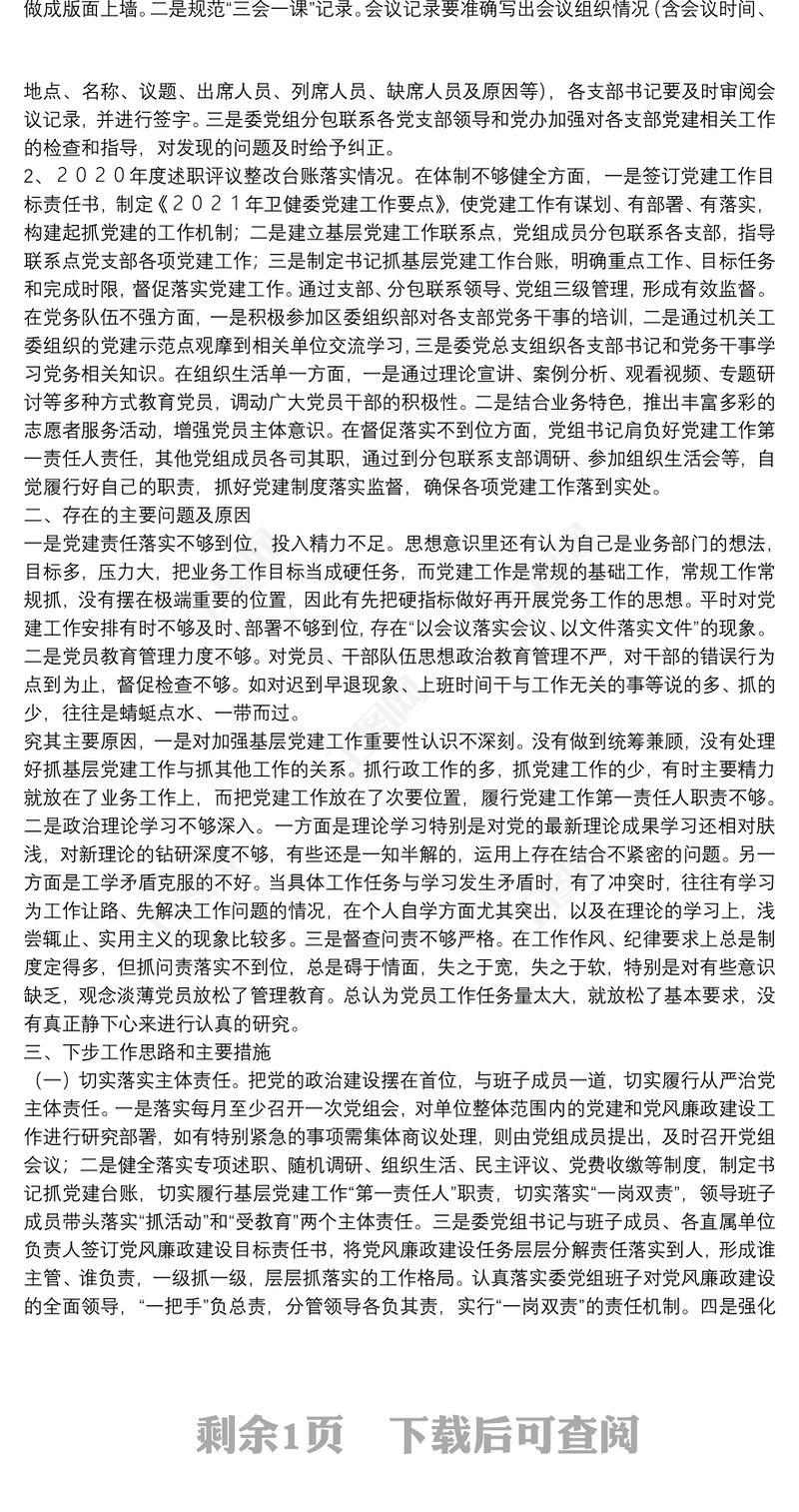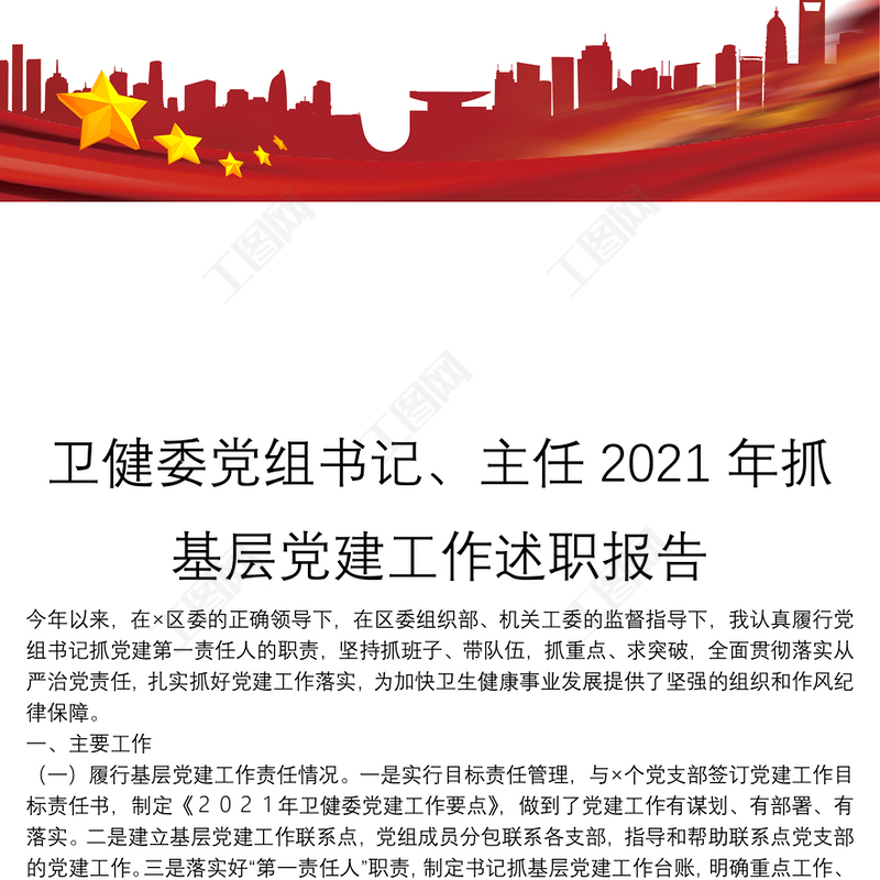 工圖網(wǎng)提供衛(wèi)健委黨組書記、主任2021年抓基層黨建工作述職報告供會員免費下載。更多精彩黨課PPT素材,盡在工圖網(wǎng)。