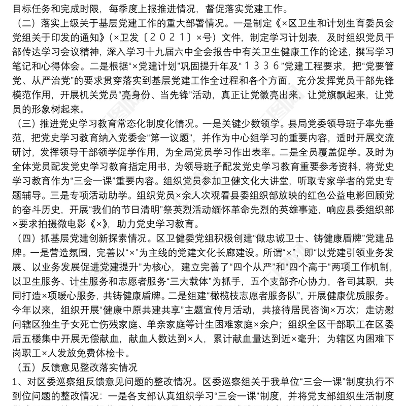 衛(wèi)健委黨組書記、主任2021年抓基層黨建工作述職報告 Array