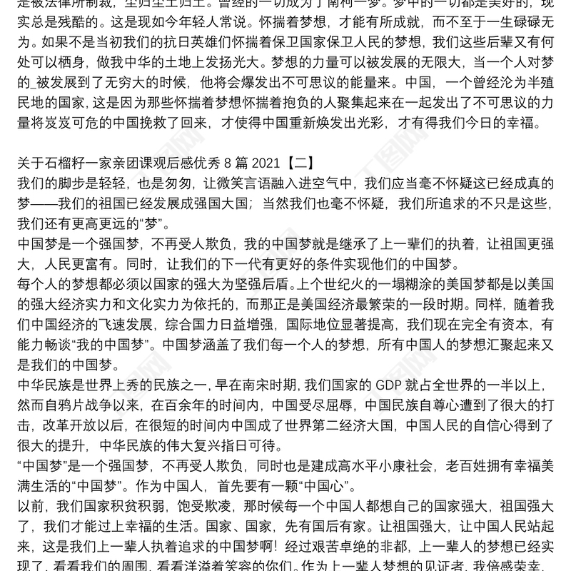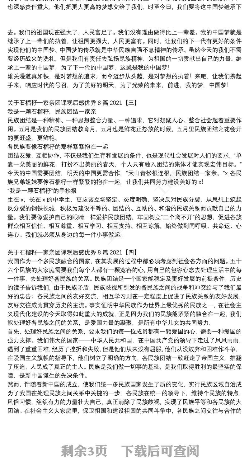 關(guān)于石榴籽一家親團課觀后感優(yōu)秀8篇2021 Array