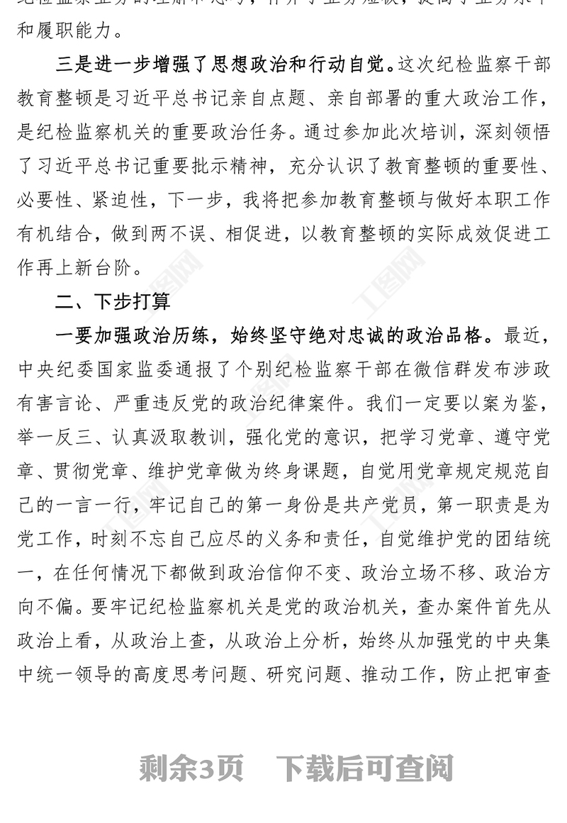 工圖網(wǎng)提供紀(jì)檢監(jiān)察干部在紀(jì)檢監(jiān)察干部隊(duì)伍教育整頓專題培訓(xùn)班上的研討交流發(fā)言材料供會(huì)員免費(fèi)下載。更多精彩黨課PPT素材,盡在工圖網(wǎng)。