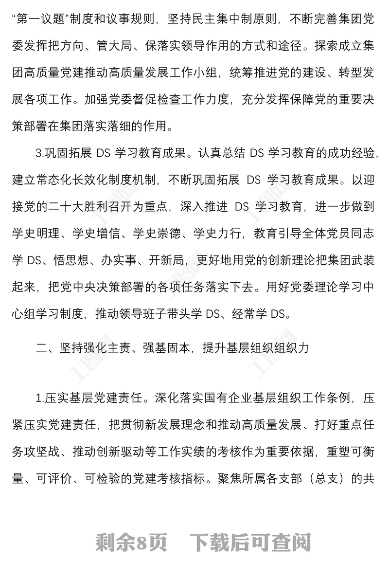 > 黨風(fēng)廉政 > 黨風(fēng)廉政要點(diǎn)2022年黨建與黨風(fēng)廉政建設(shè)工作要點(diǎn)范文國(guó)有企業(yè)集團(tuán)國(guó)企工作計(jì)劃方案.DOCX 【圖片、文字、動(dòng)畫均可編輯】