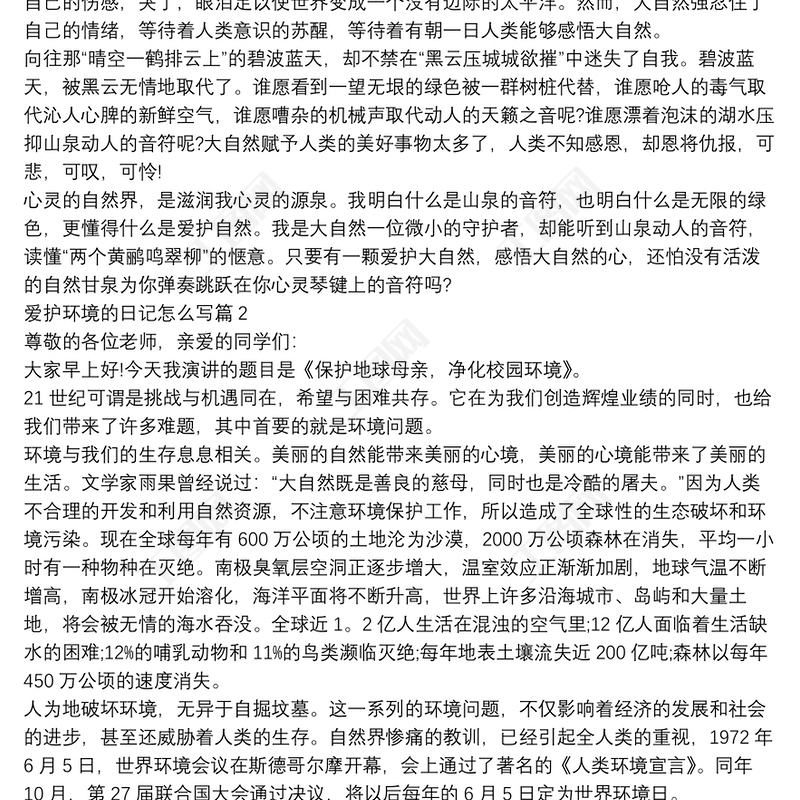 首頁(yè) > WORD文檔 > 公文范文 > 愛(ài)護(hù)環(huán)境的日記怎么寫(xiě)8篇.DOCX 【圖片、文字、動(dòng)畫(huà)均可編輯】