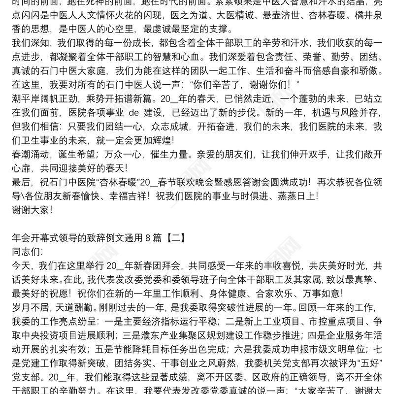 工圖網(wǎng)提供年會(huì)開幕式領(lǐng)導(dǎo)的致辭例文通用8篇供會(huì)員免費(fèi)下載。更多精彩黨課PPT素材,盡在工圖網(wǎng)。