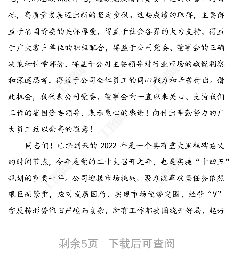 工圖網(wǎng)提供國企董事長在2021年年終工作會議上的講話供會員免費下載。更多精彩黨課PPT素材,盡在工圖網(wǎng)。