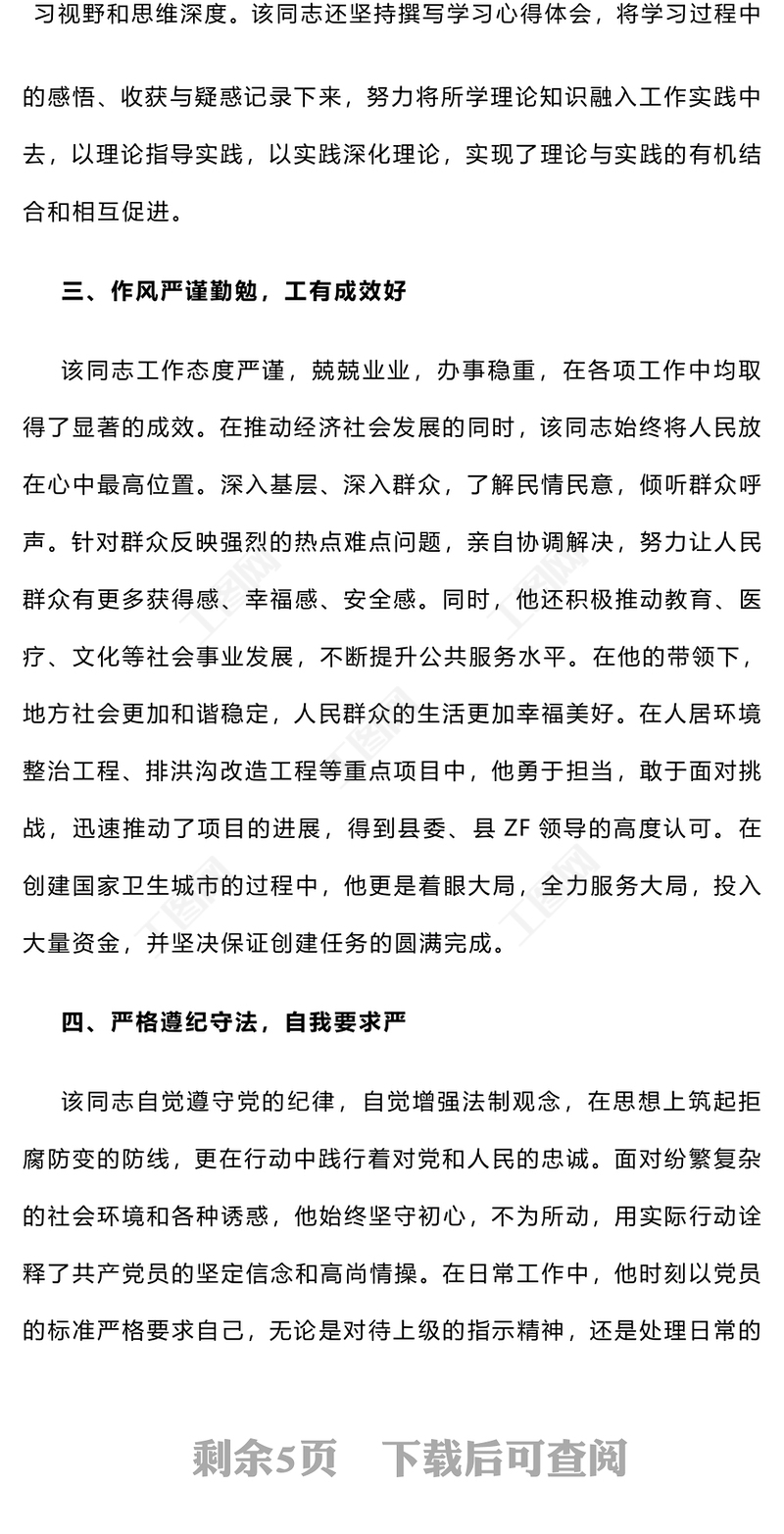 工圖網(wǎng)提供2024年干部考察現(xiàn)實(shí)表現(xiàn)材料精選范文供會員免費(fèi)下載。更多精彩黨課PPT素材,盡在工圖網(wǎng)。