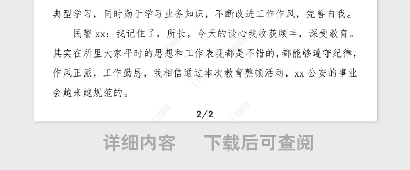 工圖網(wǎng)提供政法隊伍教育整頓談心談話記錄范文派出所所長和民警警察干警供會員免費下載。更多精彩黨課PPT素材,盡在工圖網(wǎng)。