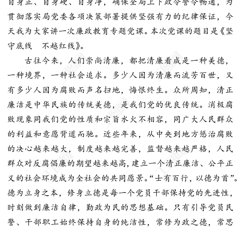 堅守底線,不越紅線——廉政教育專題黨課,廉政教育,公文范例,領(lǐng)導(dǎo)述職報告,機關(guān)公文寫作 Array