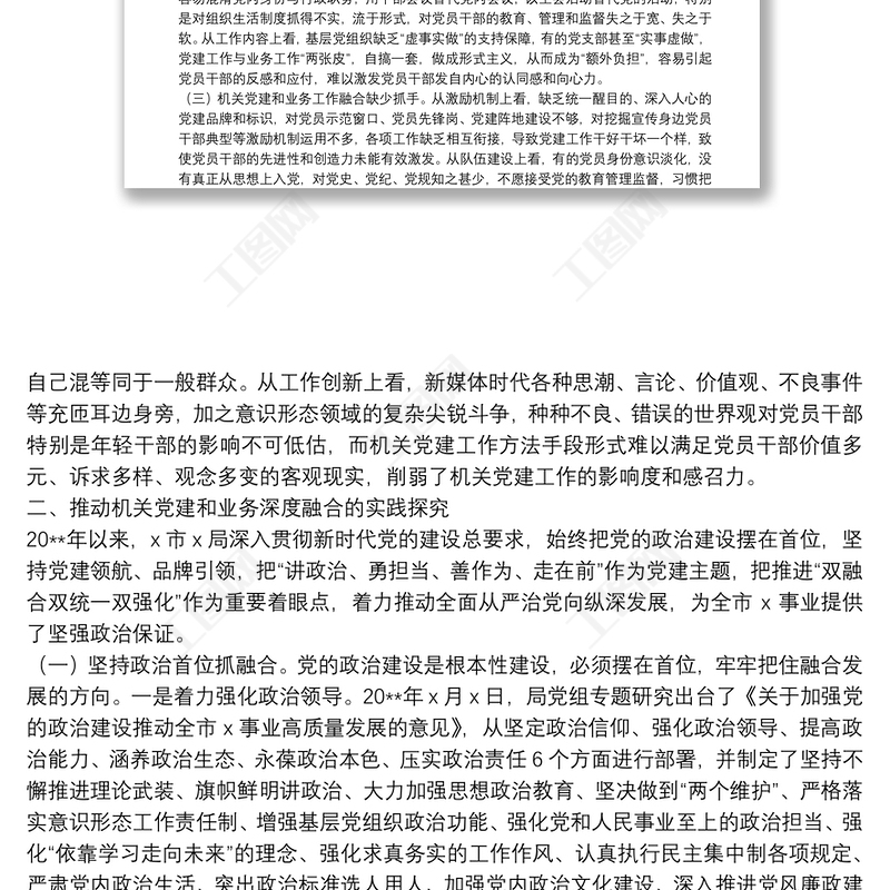 工圖網(wǎng)提供 關(guān)于推動(dòng)機(jī)關(guān)黨建和業(yè)務(wù)深度融合的調(diào)研報(bào)告供會(huì)員免費(fèi)下載。更多精彩黨課PPT素材,盡在工圖網(wǎng)。