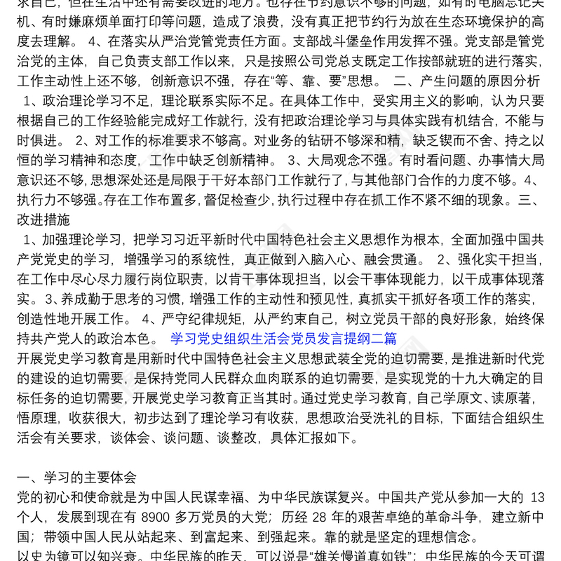 首頁 > WORD文檔 > 組織生活會 > 學(xué)習(xí)黨史組織生活會黨員發(fā)言提綱三篇.DOCX 【圖片、文字、動畫均可編輯】