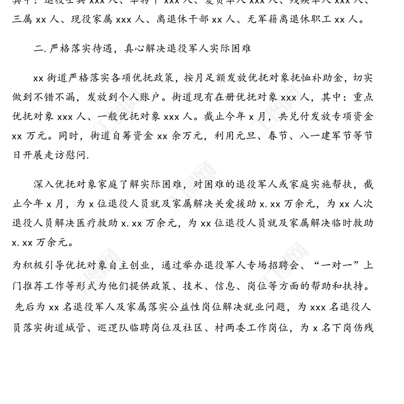 退役軍人工作推進情況基本情況匯報(街道)