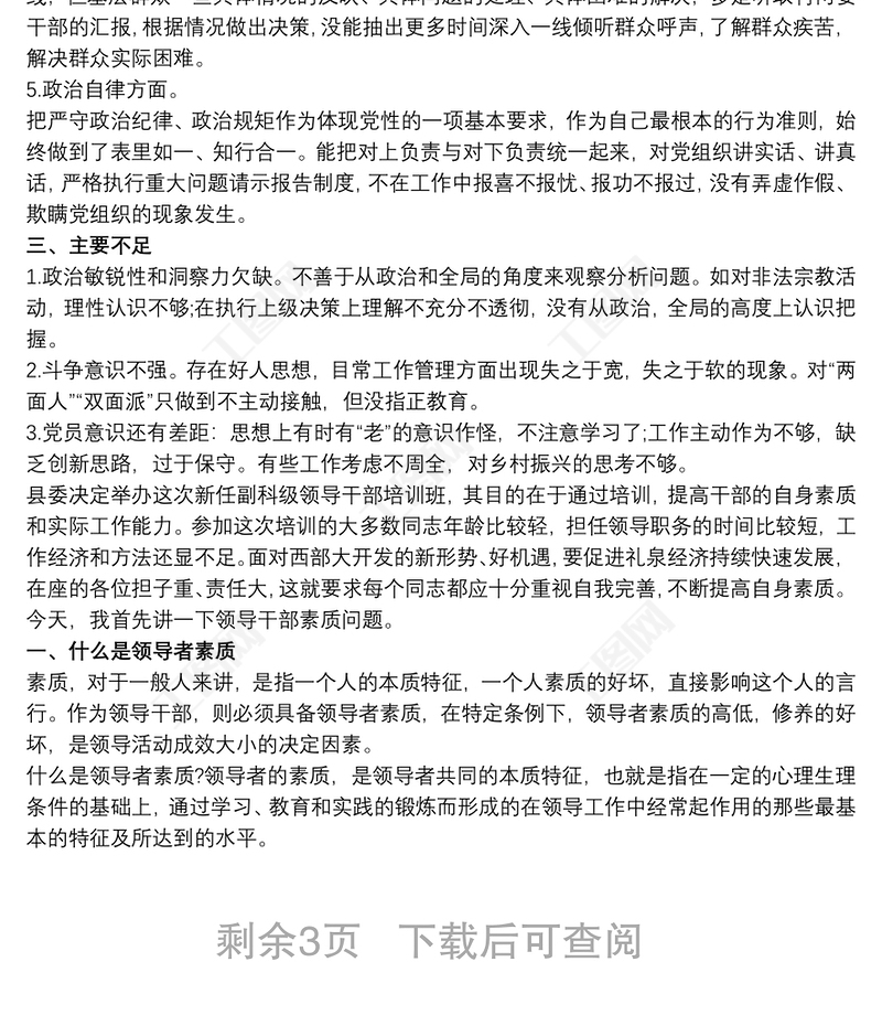 工圖網(wǎng)提供領(lǐng)導(dǎo)干部政治素質(zhì)自查報告 領(lǐng)導(dǎo)干部政治素質(zhì)自評報告3篇供會員免費下載。更多精彩黨課PPT素材,盡在工圖網(wǎng)。